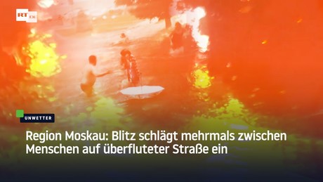 Region Moskau: Blitz schlägt mehrmals zwischen Menschen auf überfluteter Straße ein